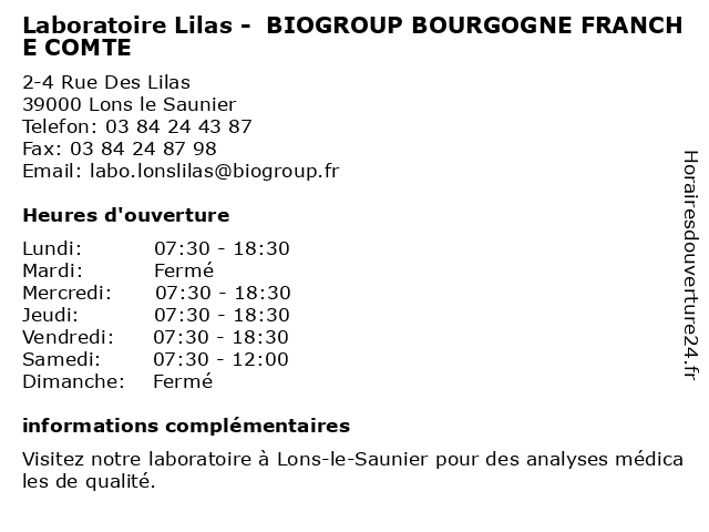 Termes de recherche pour Laboratoire Lilas - BIOGROUP BOURGOGNE FRANCHE COMTE:comte, lilas, laboratoire, bourgogne, franche, biogroup, dépistages, laboratoire de diagnostic |