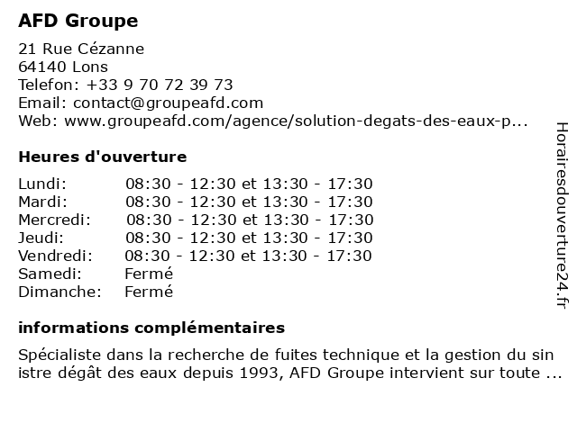 | Lundi | 08:30-12:30 et 13:30-17:30 |