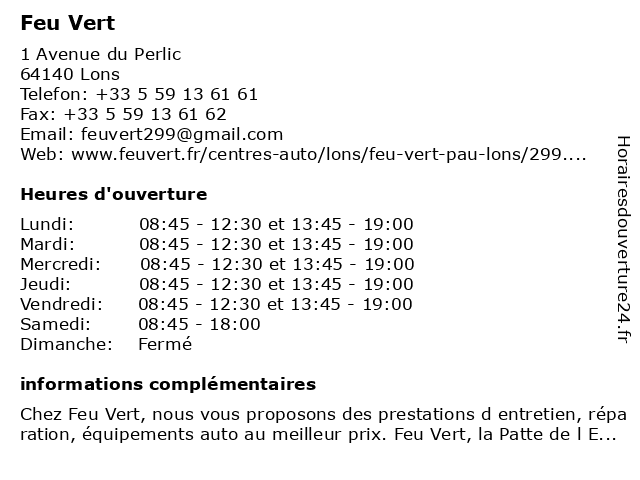 1 Feu Vert (Distance: 2,96 km) - Avenue Ampere, 64230 Lescar automobilistes un entretien et des équipements de qualité, feu, motos et accessoires, vert, voitures 2 Feu Vert (Distance: 4,09 km) - Avenue Ampère, 64230 Lescar automobile, centre auto, dépannage, entretien, feu, feuvert, garage, pneus, réparation, vert 4 Feu Vert (Distance: 19,18 km) 470 D938, 64800 Mirepeix amortisseurs, ampoule, autoradio, batterie, chaussettes neige, chaînes neige, coffre de toit, feu, freinage, glacière, pneu, pneu 4 saisons, pneu hiver, remorque, révision, vert, vidange 6 Ô Feu de Bois (Distance: 0,54 km) 4 Avenue Didier Daurat, 64000 Pau bois, café, de, feu, italien, pizzas, pizzeria, restaurant, restauration |
