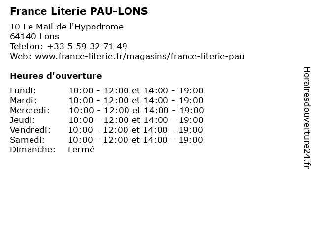 | Mardi | 10:00-12:00 et 14:00-19:00 |