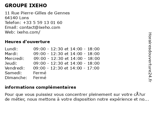 | Lundi | 09:00-12:30 et 14:00-18:00 |