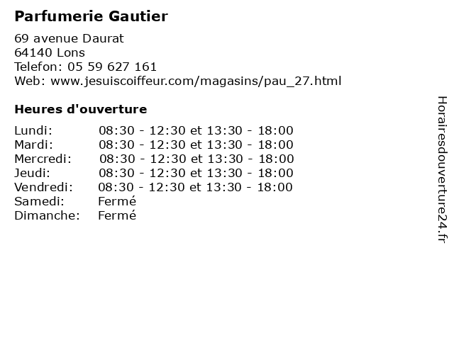 | Lundi | 08:30-12:30 et 13:30-18:00 |