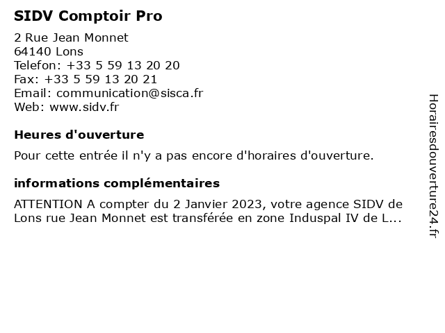 Appeler SIDV Comptoir Pro | |