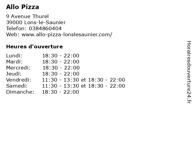 | Samedi | 11:30-13:30 et 18:30-22:00 |