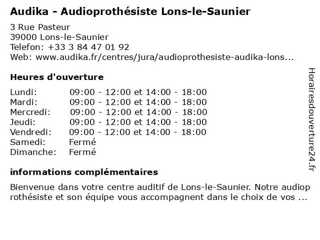 Termes de recherche pour Audika - Audioprothésiste Lons-le-Saunier:le, lons, saunier, appareil auditif, audika, audioprothésiste, specialiste audition, audiologiste, centre auditif |