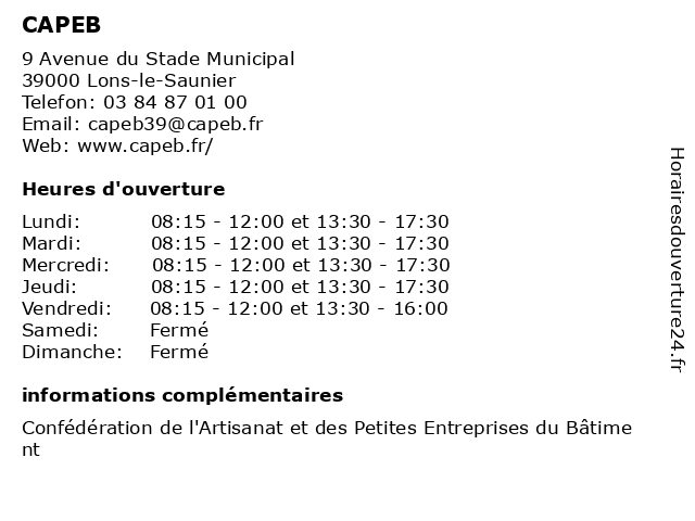 Lundi | 08:15-12:00 et 13:30-17:30 |