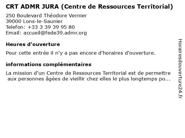 | Appeler CRT ADMR JURA (Centre de Ressources Territorial) | |