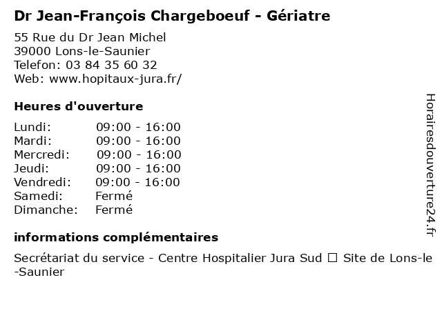 Termes de recherche pour Dr Jean-François Chargeboeuf - Gériatre:le, de, lons, jean, francois, centre, sud, site, saunier, jura, age, hospitalier, dr, gériatrique, gériatrie, gériatre, fragilee, chargeboeuf |