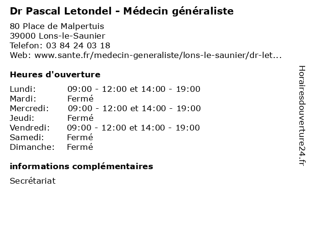 Termes de recherche pour Dr Pascal Letondel - Médecin généraliste:pascal, soin, medical, généraliste, docteur, médecin, dr, letondel |