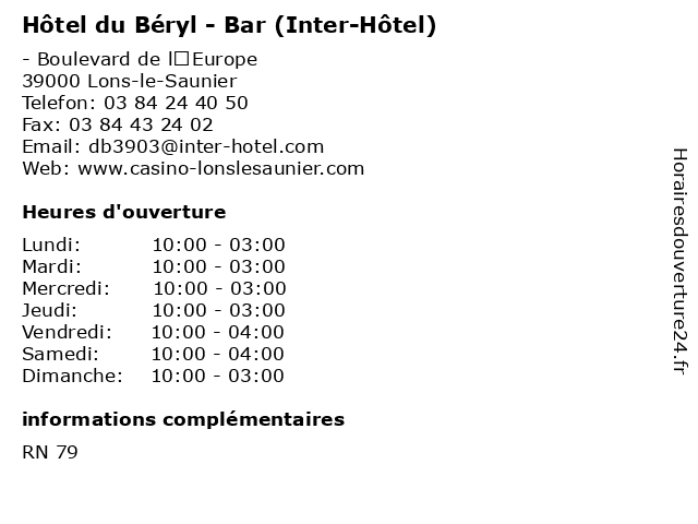| Dimanche | 10:00-03:00 |