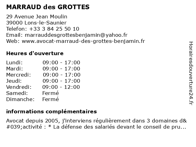 Horaires d'ouverture |