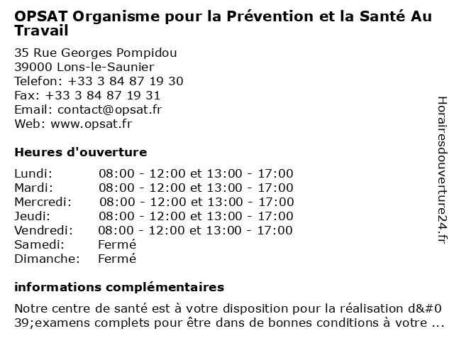 | Lundi | 08:00-12:00 et 13:00-17:00 |