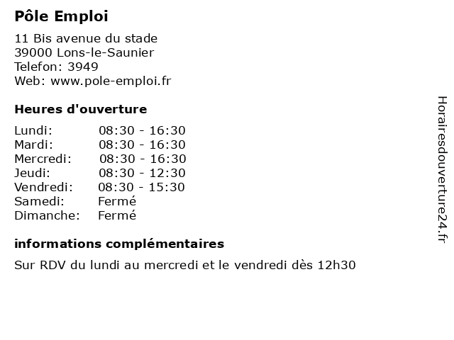 1 Pôle Petite Enfance - Enfance et Scolaire (Distance: 0,23 km) 4 Avenue du 44ème R.I., 39000 Lons-le-Saunier activités, enfance, espace, et, jeunes, loisirs, petite, pôle, scolaire 2 Direction départementale de l'emploi, du travail, des solidarités et de la protection des populations (DDETSPP) (Distance: 0,79 km) 8 Rue de la Préfecture, 39000 Lons-le-saunier cohesion, ddetspp, de, des, direction, du, départementale, et, l'emploi, la, populations, protection, publique, service, solidarités, travail 3 Samsic Emploi Lons-le-Saunier (Distance: 0,99 km) 205 Rue Regard, 39000 Lons-le-Saunier emploi, intérim, le, lons, recrutement, samsic, saunier 4 Cap Emploi (Distance: 1,10 km) 1000 rue des Gentianes, 39000 Lons-le-Saunier administration, cap, emploi, jura, organismes, publics, services 5 Cap Emploi (Distance: 1,10 km) 1000 rue des Gentianes, 39000 Lons-le-Saunier administration, cap, emploi, jura, organismes, publics, services 6 Pôle Emploi (Distance: 28,11 km) 190 Rue Alfred et Maurice Bouvet, 39300 Champagnole administration, agence, candidats, emploi, employeurs, offres, pole, public, publique, pôle, recherche, service, travail |