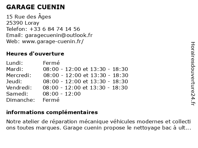 | Mardi | 08:00-12:00 et 13:30-18:30 |