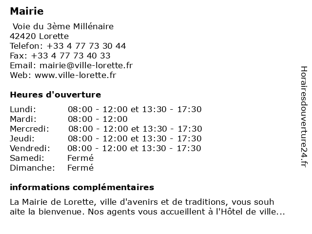 | Lundi | 08:00-12:00 et 13:30-17:30 |