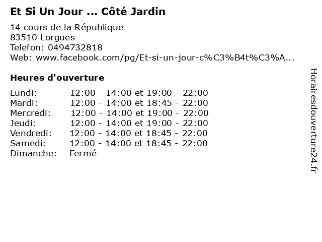 Termes de recherche pour Et Si Un Jour ... Côté Jardin:et, jardin, brasserie, restaurants, cote, jour, un, plats, si, ... |