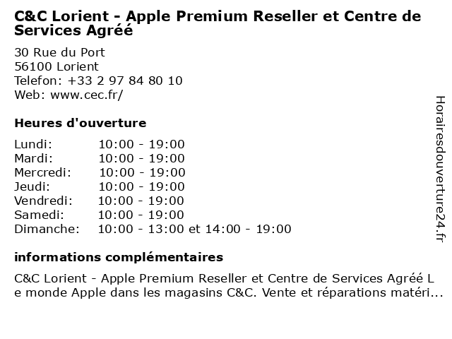 | Dimanche | 10:00-13:00 et 14:00-19:00 |