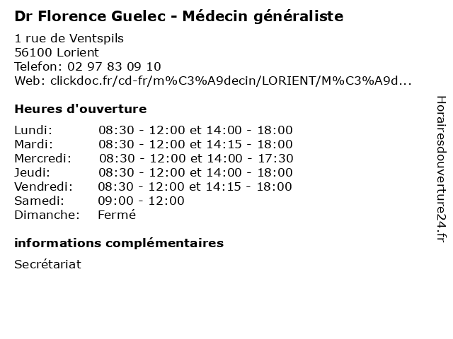 | Lundi | 08:30-12:00 et 14:00-18:00 |