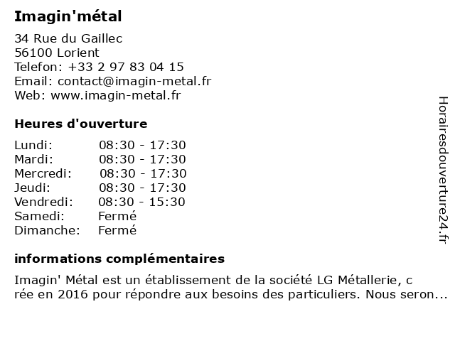 1 Métal Solution (Distance: 3,47 km) Rue Jean Moulin, 56270 Ploemeur aluminium, escalier, garde corps, metal, métal, métallerie, portail, rampe, solution 2 Ker Concept Métal LSF (Distance: 4,13 km) 8 Rue de la Pépinière, 56530 Quéven concept, ker, lsf, métal 4 Structure Métal Concept (Distance: 19,58 km) 1 ZAC de Lanveur, Rue Neuve, 56440 Languidic concept, escalier, garde corps, métal, métallerie, pergolas, portail, porte, structure 5 Metal Desig (Distance: 1,13 km) Rue de la Cardonnière, 56100 Lorient chaudronnerie, desig, design, design métal, ferronnerie, lorient, metal, métallerie, serrurerie 6 L'Atelier Enchanté (Distance: 3,13 km) 19 Rue Victor Massé, 56100 Lorient boîtes à musique et instruments, courtepointes, enchanté, jouets d'éveil, jouets en bois, l'atelier, métal, rêves d'enfants, shopping. |