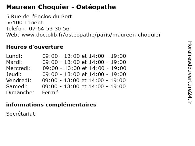 | Lundi | 09:00-13:00 et 14:00-19:00 |