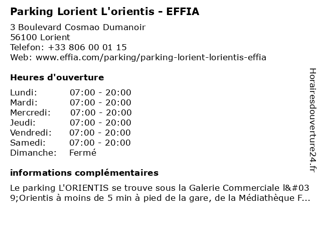 2 Onepark / L'Orientis Parking (Distance: 0,09 km) 29 Boulevard Cosmao Dumanoir, 56100 Lorient l'orientis, onepark, parking, services 3 Parking Lorient Gare Sud - EFFIA (Distance: 0,25 km) 4 bis Rue Germaine Tillion, 56100 Lorient effia, gare, lorient, parking, sud 4 Parking Lorient Alsace Lorraine - EFFIA (Distance: 0,51 km) 1 Place Alsace-Lorraine, 56100 Lorient alsace, effia, lorient, lorraine, parking 5 Onepark / Nayel Parking (Distance: 0,87 km) - Rue Paul Bert, 56100 Lorient nayel, onepark, parking, services 6 Parking Lorient Nayel - EFFIA (Distance: 0,92 km) 9 Quai des Indes, 56100 Lorient effia, lorient, nayel, parking |