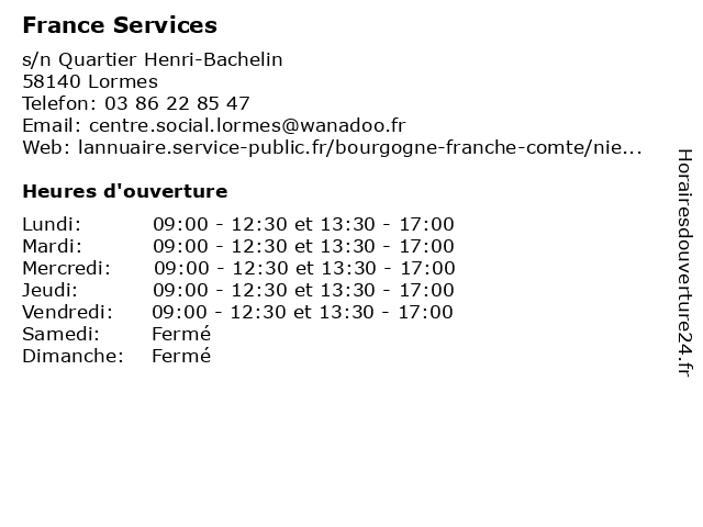 | Lundi | 09:00-12:30 et 13:30-17:00 |