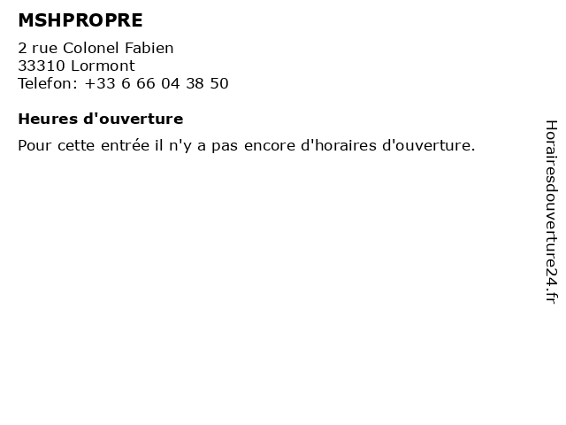 Termes de recherche pour MSHPROPRE:mshpropre |