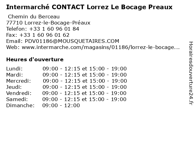 Termes de recherche pour Intermarché CONTACT Lorrez Le Bocage Preaux:le, intermarché, bocage, contact, préaux, lorrez |