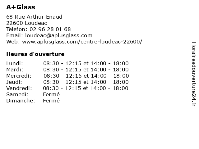 1 A+GLASS LOUDEAC (Distance: 0,03 km) 68 Rue Arthur Enaud, 22600 Loudéac a+glass, aplusglass, automobile, bris de glace, camion, centres a+glass, eclairage, france, loudeac, pare-brise, parebrise 2 Leonidas (Distance: 18,14 km) 82 rue Général de Gaulle, 56300 Pontivy chocolat, confiserie, glace, leonidas, pâtes de fruits 3 France Pare Brise (Distance: 19,33 km) 19 Rue Albert de Mum, 56300 Pontivy bris de glace, brise, france, pare, services 4 France Pare Brise (Distance: 36,89 km) 4 Rue Marc Seguin, 22360 Langueux bris de glace, brise, france, pare, pare brise, services 5 Patinoire de Langueux - Période scolaire (Distance: 37,01 km) 24 Rue du Pont Léon, 22360 Langueux de, famille, glace, glisse, langueux, loisirs, patin, patinoire, période, scolaire, sport 6 Patinoire de Langueux - Petites vacances scolaires (Distance: 37,01 km) 24 Rue du Pont Léon, 22360 Langueux de, famille, glace, glisse, langueux, loisirs, patin, patinoire, petites, scolaires, sport, vacances |