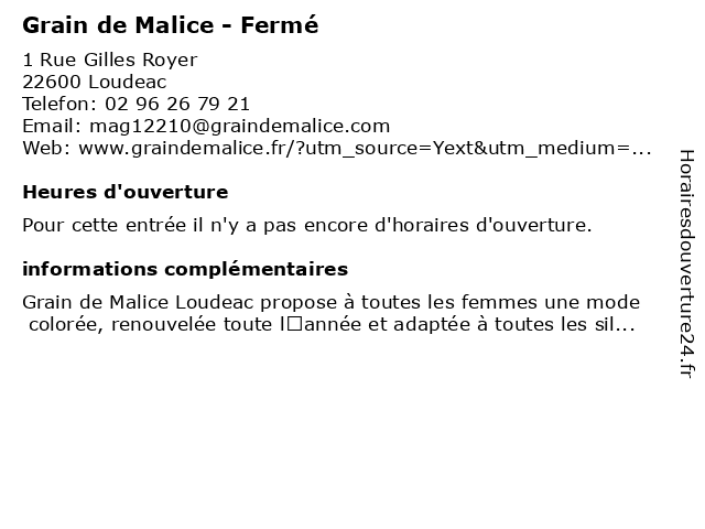 | Appeler Grain de Malice - Fermé | |