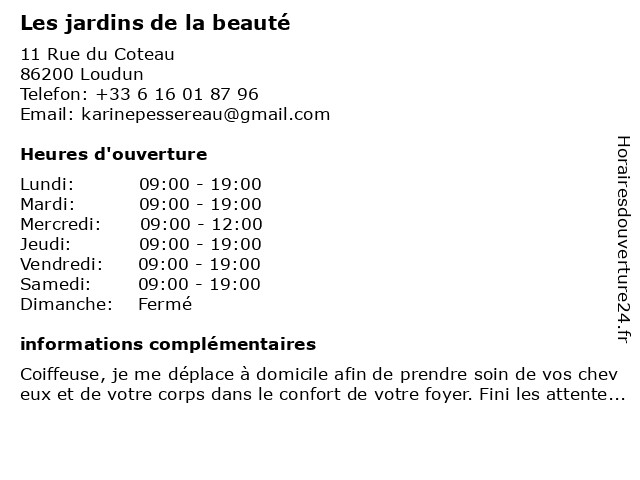 | Lundi | 09:00-19:00 |
