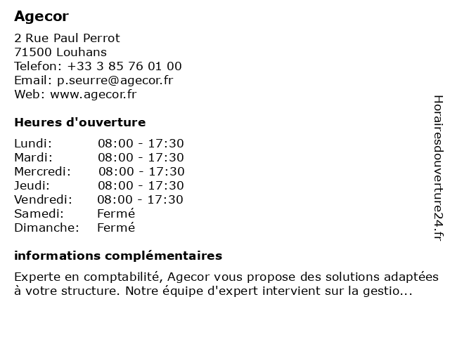 2 Agecor (Distance: 32,88 km)3 Rue Gustave Legray, 71100 Chalon-sur-Saône agecor