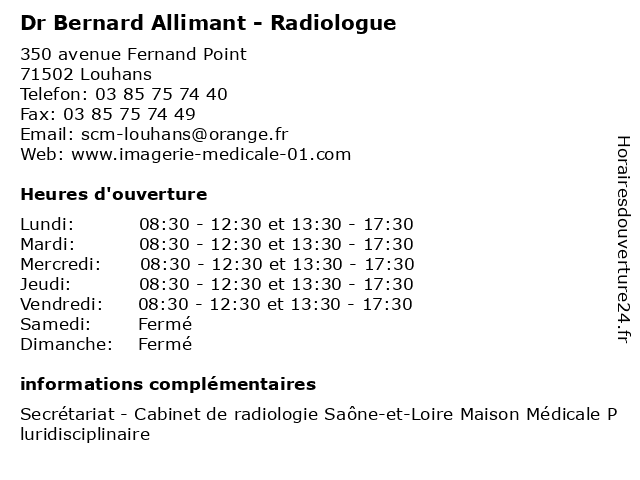 | Lundi | 08:30-12:30 et 13:30-17:30 |