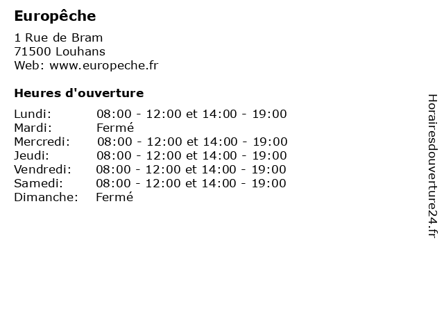 | Lundi | 08:00-12:00 et 14:00-19:00 |