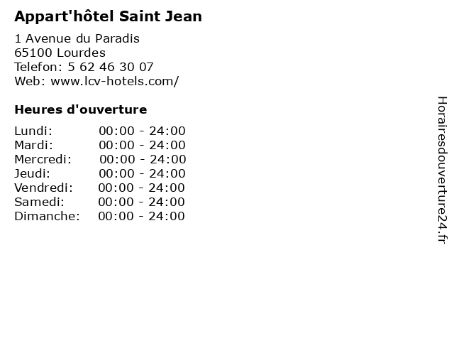 | Samedi | 00:00-24:00 |