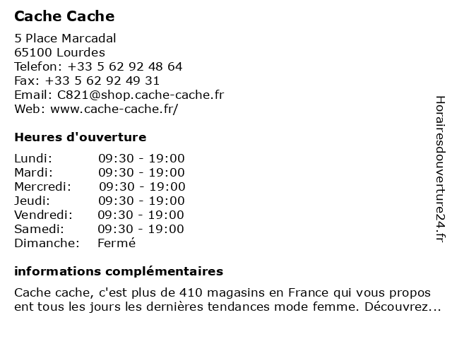 Horaires d'ouverture |