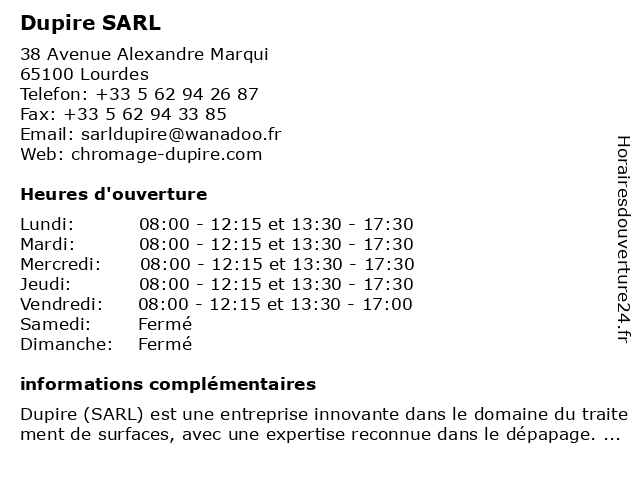 | Mardi | 08:00-12:15 et 13:30-17:30 |