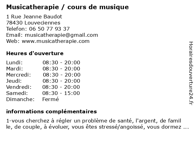 | Lundi | 08:30-20:00 |