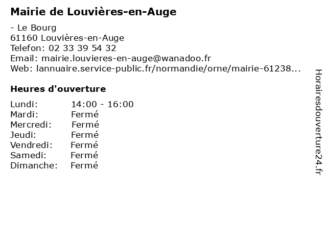 Termes de recherche pour Mairie de Louvières-en-Auge:en, de, administration, mairie, auge, assoc public, louvières |