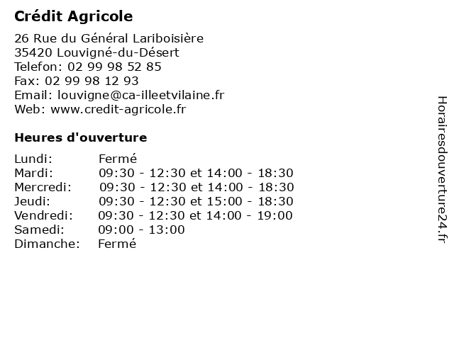 Horaires d'ouverture |