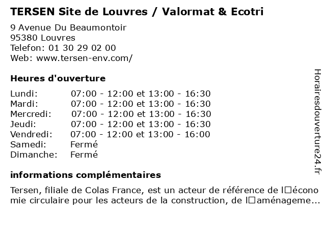 Termes de recherche pour TERSEN Site de Louvres / Valormat & Ecotri:de, site, louvres, tersen, entreprise générale de construction, centre de recyclage, valormat, ecotri |