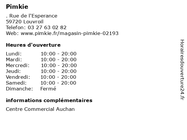| Lundi | 10:00-20:00 |