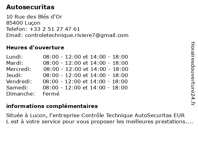 1 Auto Securitas - Active Automobile Fontenaisien (Distance: 25,70 km) 8 Rue Raymond Vinet, 85200 Fontenay-Le-Comte active, auto, automobile, autosecuritas, contrôle, examen, fontenaisien, securitas, technique, visite, véhicule 2 Auto Securitas - La Rochelle Auto Contrôle (Distance: 32,91 km) 18 Rue Aristide Bergès, 17180 Perigny auto, autosecuritas, contrôle, examen, la, rochelle, securitas, technique, visite, véhicule |
