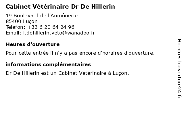 | Appeler Cabinet Vétérinaire Dr De Hillerin | |