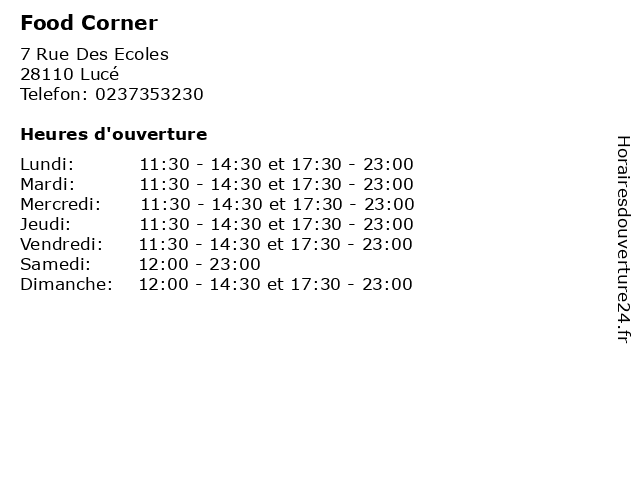 | Mardi | 11:30-14:30 et 17:30-23:00 |