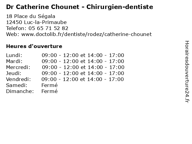 | Lundi | 09:00-12:00 et 14:00-17:00 |