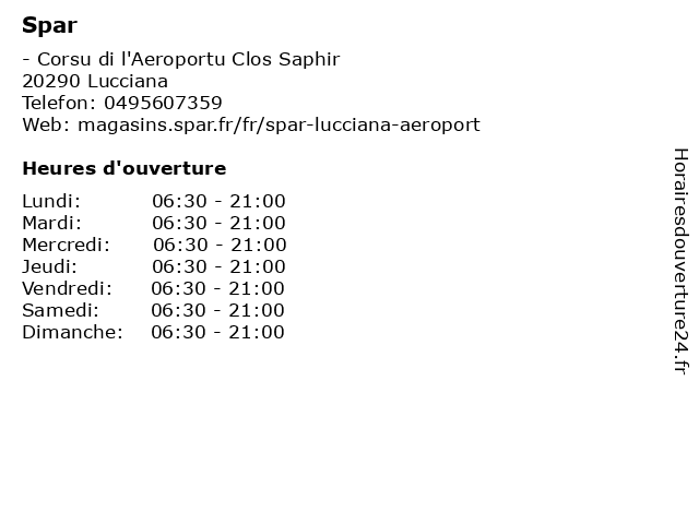 | Samedi | 06:30-21:00 |
