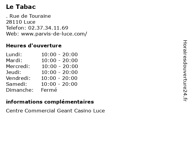 1 Tabac (Distance: 0,30 km) . Rue de Touraine, 28110 Lucé casino, centre, commercial, galerie, geant, la, luce, tabac 2 Tabac Le Balto (Distance: 1,86 km) 56 Rue de la République, 28110 Lucé balto, carte, cigarette, fdj, grise, journaux, le, presse, tabac 3 Centre anti tabac laserOstop (Distance: 2,39 km) 58 Avenue du Maréchal Maunoury, 28000 Chartres anti, centre, fumeur, laserostop, medical, santé, soins, tabac, tabagisme 4 Bar-Tabac Le Com'Back (Distance: 3,85 km) 15 Rue Félix Tasseau, 28630 Le Coudray bar, bistro, bistrot, brasserie, café, com'back, le, restaurant, restauration, tabac 5 5 à Sec (Distance: 0,00 km) . Rue de Touraine, 28110 Luce beaute, chaussures, deco, enfants, mode femmes, mode hommes, restaurant, sec, sport 6 Bata (Distance: 0,00 km) . Rue de Touraine, 28110 Luce bata, beaute, chaussures, deco, enfants, mode femmes, mode hommes, restaurant, sport |