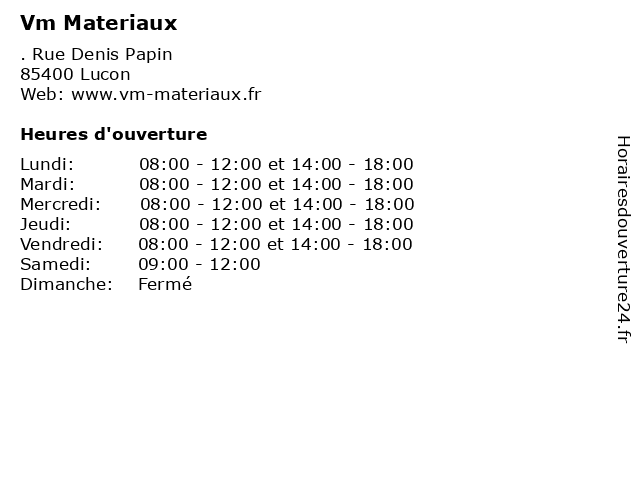 1 Vm Materiaux (Distance: 2,41 km) . Luçon, 85000 La Roche sur Yon constructives, equipements, materiaux, services, vm 2 Vm Materiaux (Distance: 8,52 km) . Zone Artisanale, 85370 Nalliers constructives, equipements, materiaux, services, vm 3 Vm Materiaux (Distance: 19,66 km) . Zone Artisanale, 85560 Longeville-sur-Mer constructives, equipements, materiaux, services, vm 6 Vm Materiaux (Distance: 32,09 km) . Rue Elie Barreau, 17000 La Rochelle constructives, equipements, materiaux, services, vm |