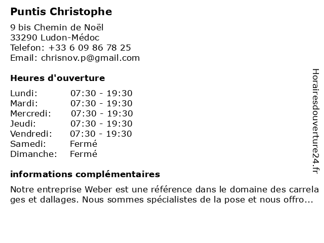 1 Jeannot Jean-Christophe (Distance: 6,53 km) 3 Impasse Jaumouille, 33440 St Louis De Montferrand christophe, jean, jeannot, restaurants 2 Coiffure Christophe Croisan (Distance: 10,54 km) 118 A Avenue de la Boétie, 33320 Le Taillan-Médoc christophe, coiffeur, coiffure, croisan, mixte 3 Jeannot Jean-Christophe (Distance: 10,84 km) 3 Avenue Du General Leclerc, 33530 Bassens christophe, jean, jeannot, restaurants 4 Christophe Lacaule - Tailleur de Pierre (Distance: 11,77 km) 24 rue Pierre Renaudel, 33110 Le Bouscat carrelages, christophe, dallages, de, lacaule, pierre, tailleur 5 Dr Jean-Christophe Sananes - Radiologue - secrétariat (Distance: 12,59 km) 15 Rue Claude Boucher, 33300 Bordeaux christophe, consultation, docteur, dr, jean, med, médecin, médecine, radiologue, sananes, secrétariat, traitement 6 Christophe Cosquer - Notaire (Distance: 12,82 km) 286 Avenue Pasteur, 33185 Le Haillan christophe, conseils, cosquer, notaire, notarial, office, services |